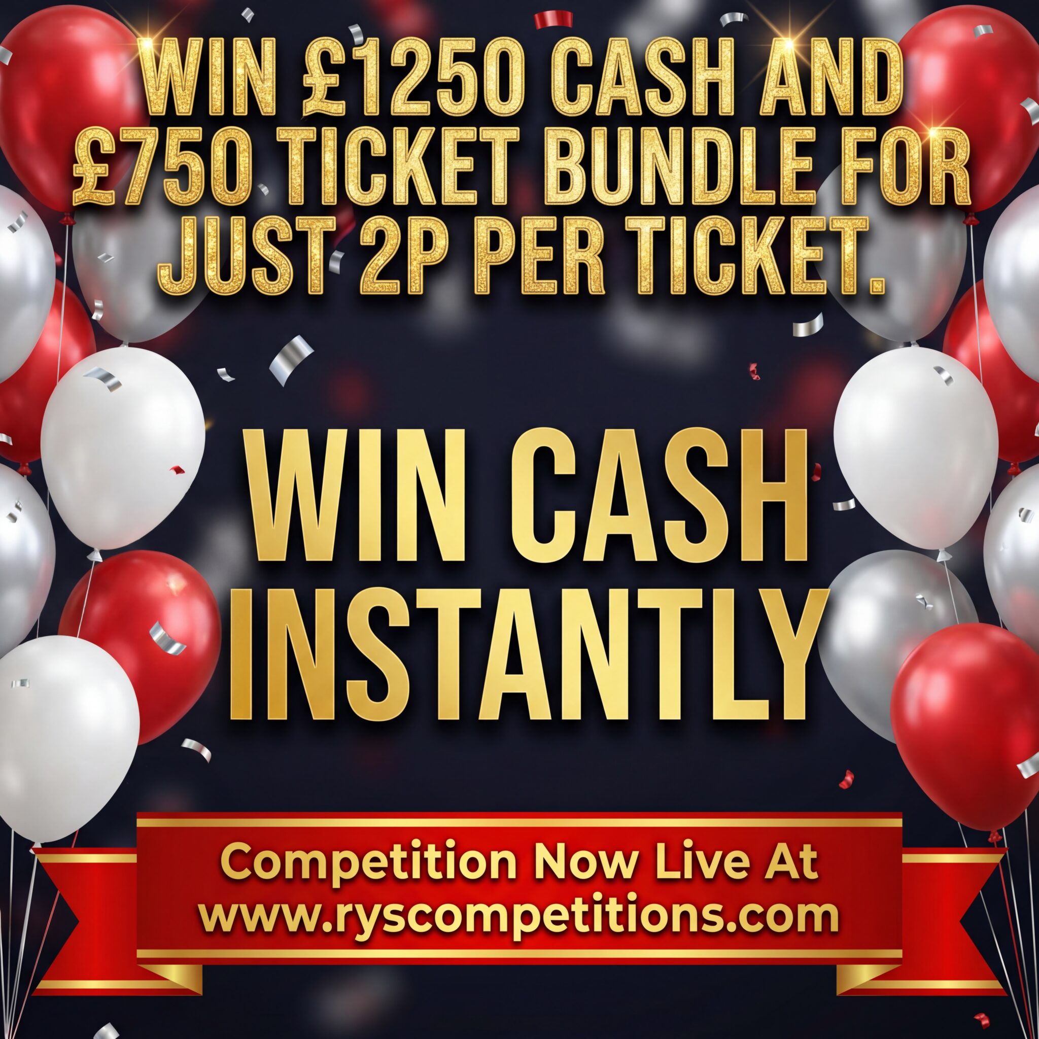 £1,250 Cash & £750 Ticket Bundle Into £1K Per Month For A Year Or £10K Outright + 10 x £200 Cash Instant Wins #2