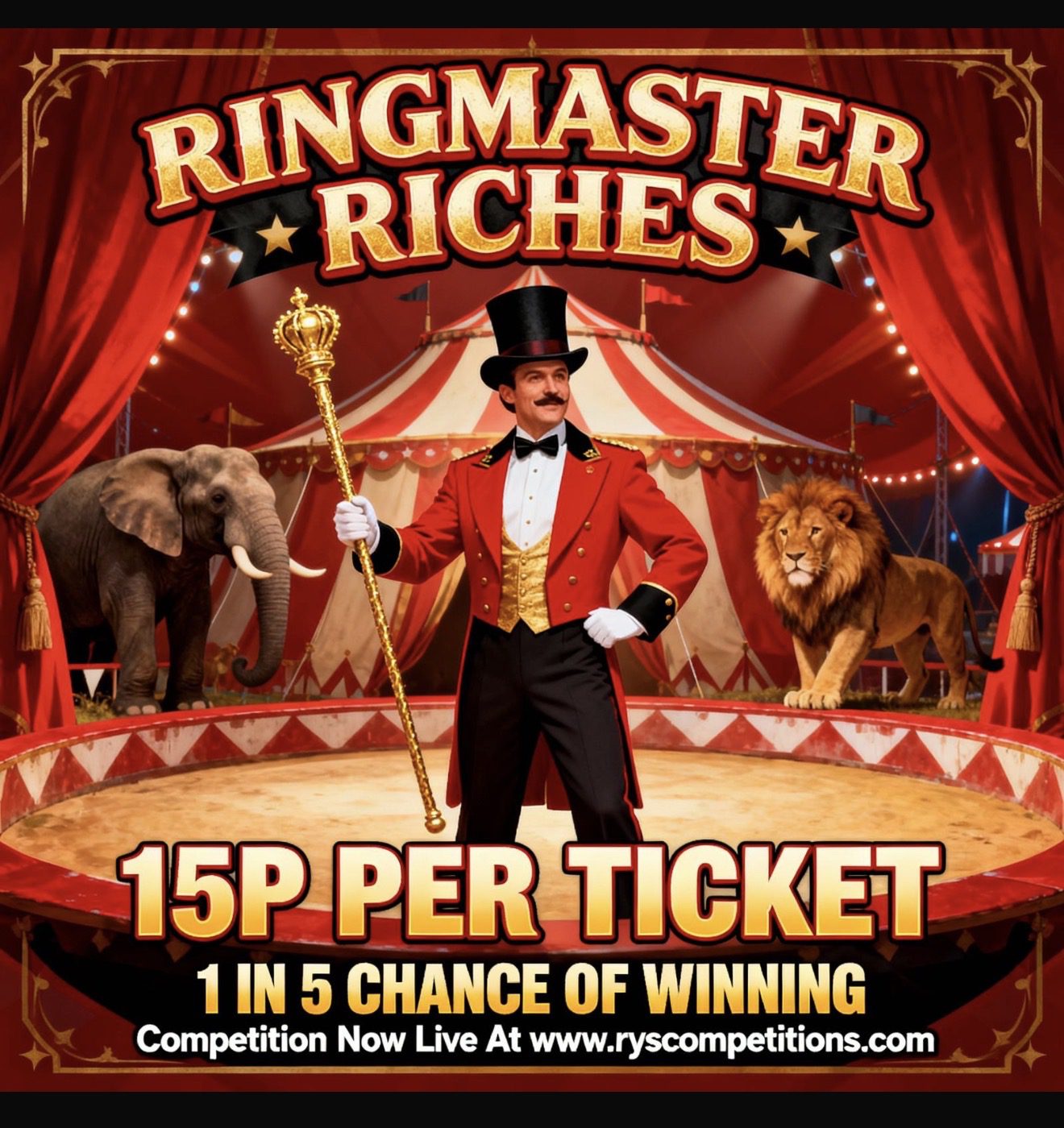 RINGMASTER RICHES – 1 IN 5 CHANCE TO WIN – £1,000 END PRIZE