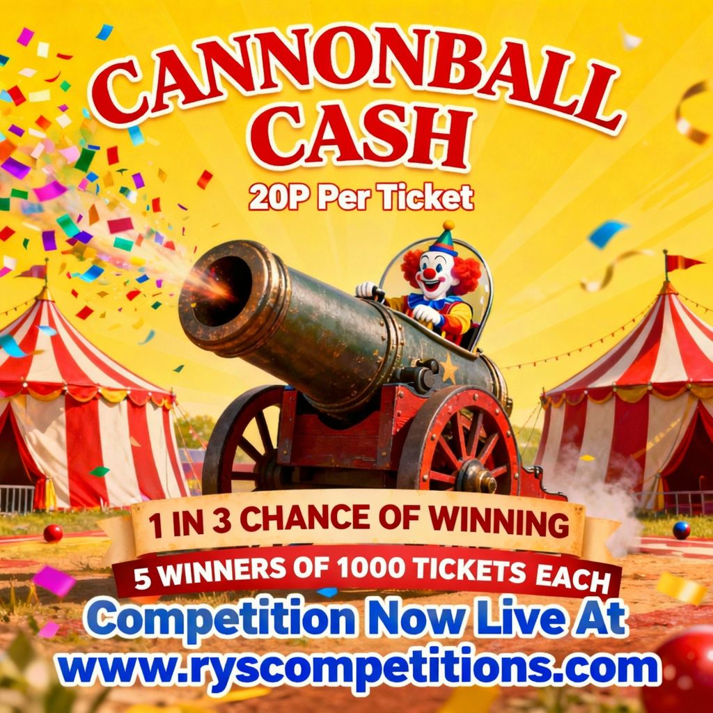 Skip to content5 WINNERS OF A 1000 TICKETS INTO CANNONBALL CASH WHERE YOU HAVE THE CHANCE TO WIN A UP TO £1000 CASH INSTANTLY