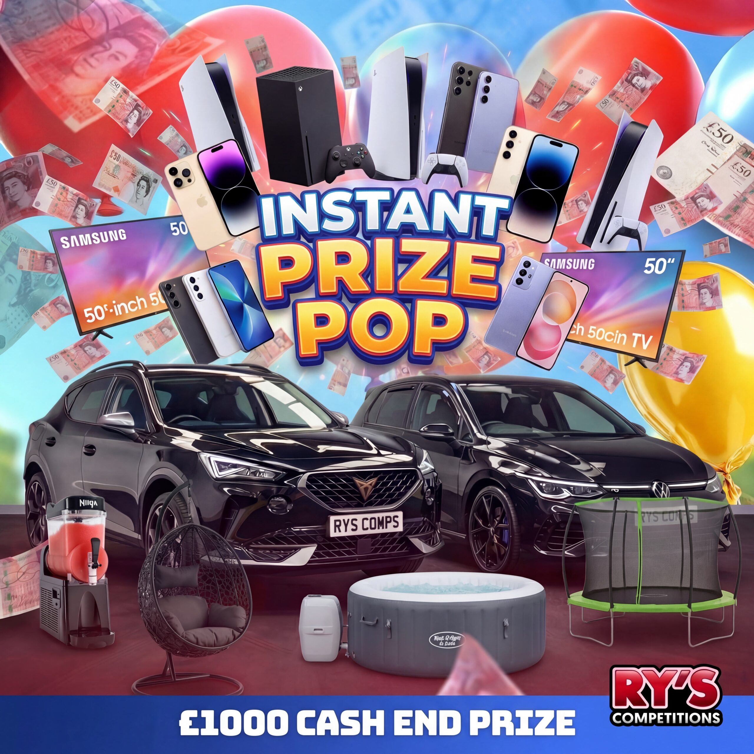 Get ready for one of our most exciting instant win competitions yet! With hundreds of instant prizes up for grabs, this is your chance to win cars, cutting-edge tech, and cash prizes instantly — plus a £1,000 end prize waiting for one lucky winner at the final draw.