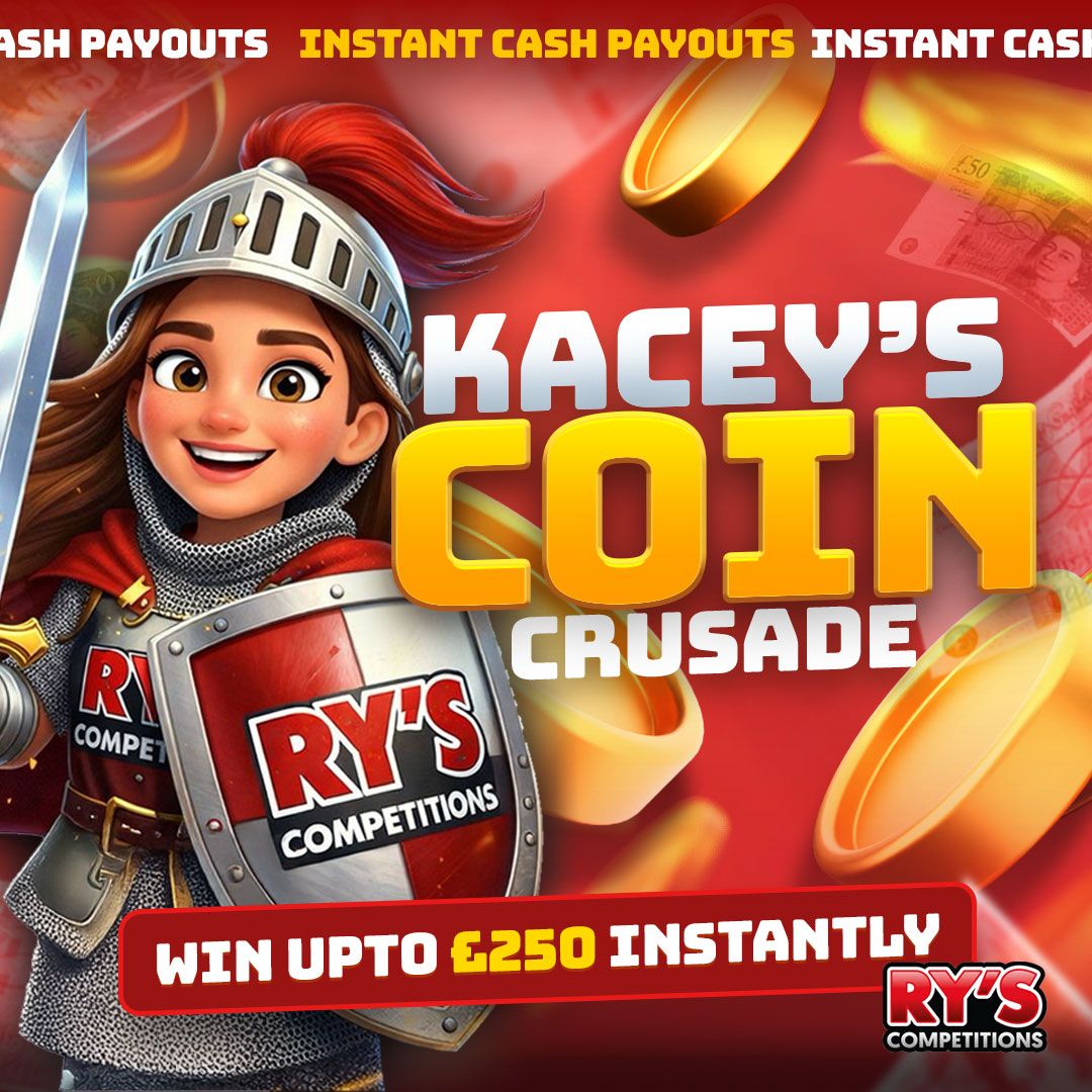 Kacey’s Coin Crusade – Win £3,000 & Upto £250 Cash Instantly