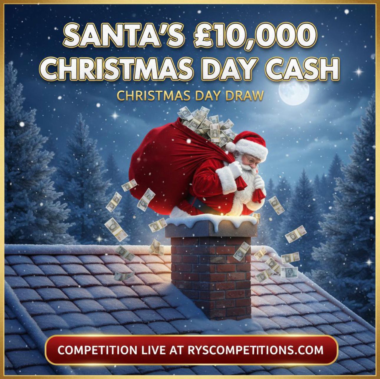 This Christmas, Santa isn’t just delivering presents… he’s giving away a massive £10,000 on Christmas Day! One lucky entrant will unwrap the ultimate festive surprise — ten thousand pounds in cash, delivered straight from the North Pole!