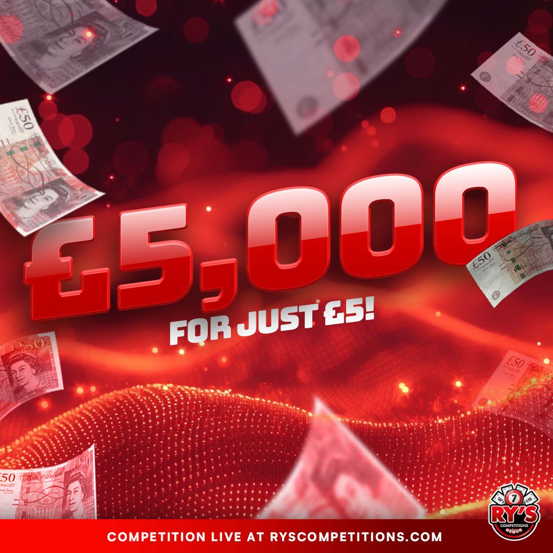 Your chance to win a massive £5,000 cash prize for only £5 per entry! With lower odds and fewer tickets available, you’ve got a greater chance of winning compared to larger competitions.